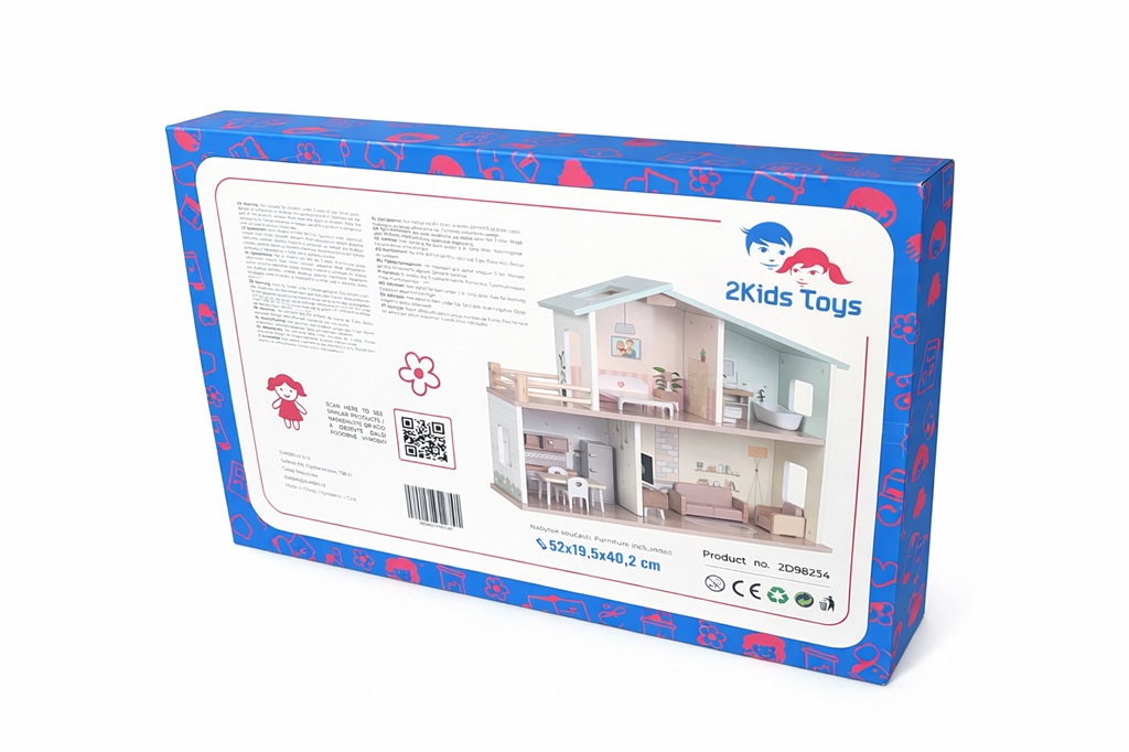 Vítejte v domečku, ve kterém vládne pohoda! Domeček ve venkovském stylu je plně vybaven nábytkem i doplňky. Najdete v něm kuchyni, útulný obývací pokoj, stylovou koupelnu s vanou, ložnici a terasu pro chvíle pohody. Děti při hře rozvíjejí fantazii, sociální dovednosti i smysl pro detail. A hlavně se výborně baví! Hravý design, jemné barvy spolu s kvalitním provedením dělají z této hračky krásný doplněk každého pokojíčku nebo herny. Domeček je dodáván v rozloženém stavu a vyžaduje montáž. Návod k sestavení je součástí balení. Hlavní vlastnosti: 16 dílůplně vybavený dřevěný domeček podporuje fantazii, tvořivost a hru na rolevede k představivé hřekvalitní zpracování a atraktivní designdodáváno v rozloženém stavu, nutná montážnávod k sestavení je součástí balenívhodné pro děti od 3 let