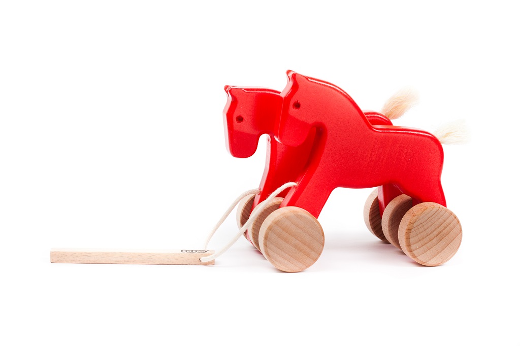 Dva koně se řítí vedle sebe a skáčou. Který vyskočí výš? Koně střídavě cválají. Když první stoupá, druhý klesá. Dohromady mají šest kol, jejichž osy otáčení jsou umístěny mimo střed. To znamená, že kolo se neotáčí ve středu, ale v kruhu. Když je hračka v pohybu, vyvolává představu cválajícího páru koní. Dítě, které si s ním hraje, si uvědomuje, jak se tato zvířata pohybují. Díky tomu se učí, všímá si a oceňuje jejich svět. Koně je potřeba uvést do pohybu provázkem, který nahrazuje otěže. Hračka rozvíjí hrubou motoriku a zároveň zapojuje pohyby těla a rukou. Může být také společníkem při prvních krůčcích. Koníci mají nelakovaná kolečka v souladu s předpoklady firmy Bajo, která dbá na to, aby každá hračka měla přírodní dřevěný prvek. Díky tomu dítě vidí, poznává a cítí strukturu dřeva. Tato hračka a obal jsou vyrobeny z přírodních zdrojů a lze je snadno recyklovat. Doporučujeme povrch hračky čistit pouze vlhkým hadříkem. Nevystavujte, prosím, tuto hračku vysokým teplotám nebo vysoké vlhkosti, dřevo se za těchto podmínek může ohýbat a deformovat. Splňuje všechny evropské bezpečnostní normy. Hlavní vlastnosti: podporuje pohybovou aktiviturozvíjí hrubou motoriku zábavnou formou
