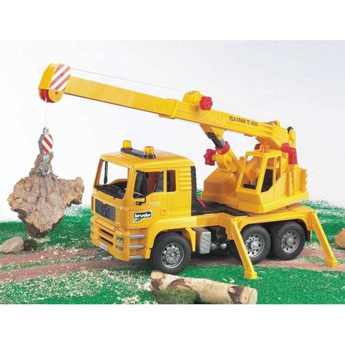 Bruder Nákladní auto MAN jeřáb stavební MAN TGA Jeřáb žlutý má sklápěcí kabinu, která umožňuje jednoduše nahlédnout do motoru. Venkovní zrcátka lze snadno sklopit, jeřábový nástavec je otočný až o 360°. Výsuvné rameno se může prodloužit a pohodlně ovládat otočným knoflíkem. Navíjecí lano je plně funkční, pro rychlé spuštění je k dispizici odblokovací tlačítko. Vůz má měkké profilované pneumatiky, za kabinou je malá odkládací schránka, na nářadí. Samozřejmě nechybí opěrné nohy pro lepší stabilitu vozu. K tomuto modelu doporučujeme dokoupit zvukový a světelný maják BR2801. Vyrobeno v Německu, z kvalitních materiálů. Hlavní vlastnosti: sklápěcí kabinasklopná zrcátkajeřábový nástavec otočný až o 360°plně funkční navíjecí lano vyrobeno v Německu