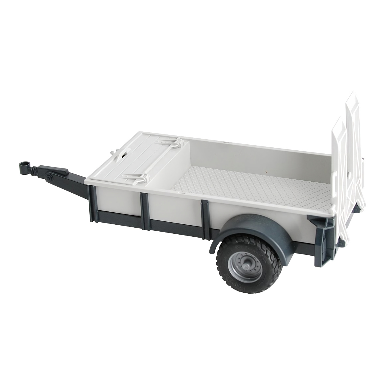 Přivěsný vozík je široce kompatibilní s modely Offroadů a dodávek Bruder. Jeho nákladový prostor je přizpůsobený k převozu mikrobagru JCB (BR62003) a malého kolového nakladače Caterpillar (BR2481), ale snadno pojme i některou z široké nabídky motorek. Je vybaven sklopnými ližinami pro snadné nakládání a úložným prostorem pro doplňky a nářadí. Slouží také jako náhradní díl k modelům BR2593 a BR2925. Vyrobeno v Německu, z kvalitních materiálů. Hlavní vlastnosti:sklopné ližinyúložný prostor opatřený víkemširoká kompatibilita s Offroady, dodávkami a malými stroji Brudervyrobeno v Německu