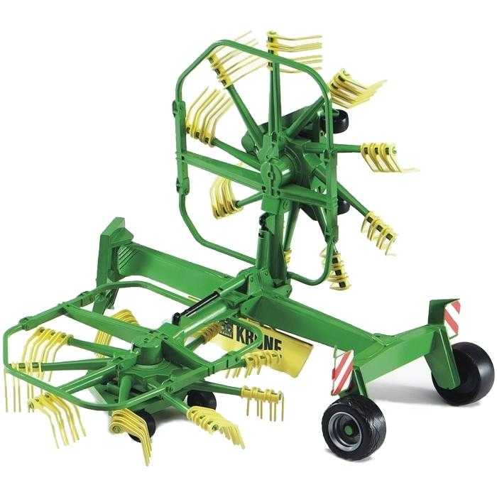 Bruder 2216 Shrnovač sena KRONE je věrná kopie originálu se všemi funkcemi a provedením. Obracečka má dvě ramena s lopatkami, které se pohybují kolem ramene. Ramena je možné při transportu vyklopit nahoru. Vyrobeno v Německu, z kvalitních materiálů. Hlavní vlastnosti: mnoho funkcíramena s pohyblivými lopatkamivýklopná ramenavyrobeno v Německu
