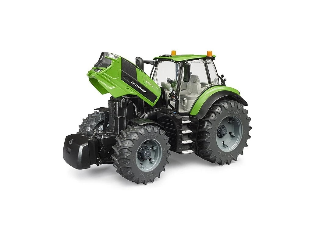 Traktor Deutz-Fahr 8280 TTV je spolehlivý a výkonný pracovní stroj s perfektní kombinací technologií pro profesionální farmáře. S působivým výkonem 287 HP je tento traktor schopen zvládnout jakoukoli výzvu. Model tohoto traktoru v měřítku 1 : 16 je věrný originálu. Kabina řidiče je plně prosklená a dveře se jednoduše otevírají. Otevírací kapota poskytuje pohled na motor. Snadné řízení je dosaženo díky vestavěné kyvadlové nápravě a prodlouženému volantu řízení, který lze zasunout přes střešní okno. Díky výškově nastavitelnému zadnímu závěsu lze použít všechny přívěsy profesionální řady. Pro ještě větší zábavu jsou připojena nová odnímatelná kola. Na tento traktor pasují všechny zemědělské přívěsy BRUDER a je možné ho rozšířit pomocí Čelního nakladače pro traktory řady 3000 BR3333 a Mechanika s nářadím BR62100. Hlavní vlastnosti: měřítko 1 : 16okna kabiny z průhledného a nerozbitného plastuotevírací dveřeotevírací kapotaodnímatelná kolaodnímatelné přední závažítažné zařízení s výškově nastavitelným závěsemdržák pro čelní nakladačřiditelná a terénní kyvadlová přední nápravaběhouny pneumatik z měkkého plastuřiditelné pomocí volantu přes střešní okno traktoruvhodné pro hraní doma i venkuvyrobeno v Německu z vysoce kvalitních plastůkompatibilní s figurkami BRUDER bworld