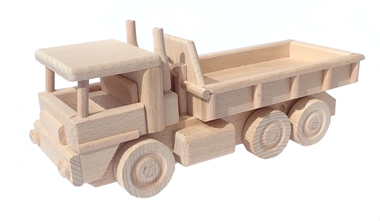 Dřevěný model auta je vyroben z vysoce kvalitního bukového dřeva. Jeho povrch je pouze voskován a leštěn, není nijak chemicky upravován či barven, aby byl zachován přírodní vzhled. Dřevěnému autu se točí kolečka a nemá žádné ostré hrany. Je vhodné i na pískoviště. Hlavní vlastnosti: precizní zpracování bukového dřeva zaoblené hrany pohyblivé prvky modelu