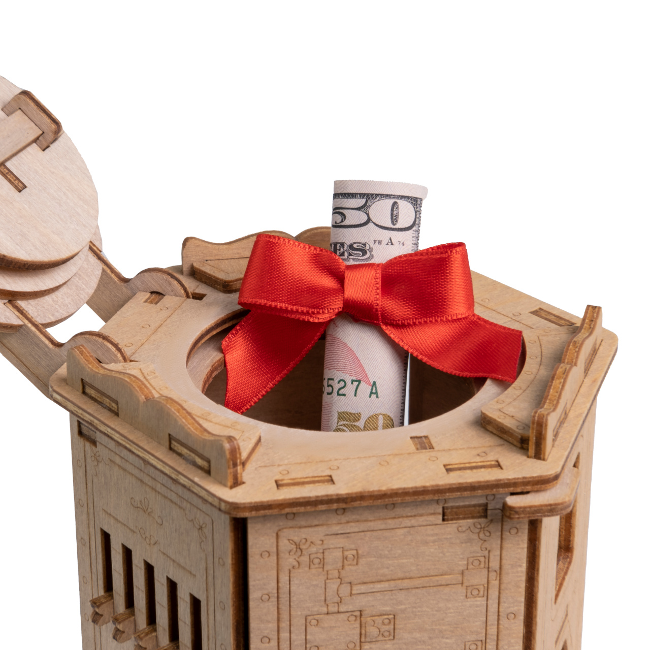 Je rok 1962, sedíte se svými kumpány v zatuchlém skladu hospody svého strejdy. To on vám řekl o převratu. O loupeži pevnosti Fort Knox – místě, kde jsou uloženy rezervy zlata USA. Zlato pro vás ale není nejdůležitějším cílem. Skrývá se tam to, co je hledáno po celém světě. Sám neblaze proslulý zločinec Al Capone položil záhadnou minci do banky tak, že ji nikdo nikdy nenašel. Al Capone řekl: „Ten, kdo minci najde, získá velkou moc a bude moci otevřít jakoukoliv banku. Pochybuji ale, že na světě existuje zločinec, který dokáže toto tajemství odhalit. Co můžete očekávat? To ví jen ti, kteří poklad do pevnosti Fort Knox přinesli. Jedna věc je jistá: pevnost Fort Knox je jedním z nejbezpečnějších míst v USA – prošpikovaná mechanismy navrženými tak, aby byly neprolomitelné. Dokážete získat přístup do trezoru a odhalit tajemství legendárního pokladu? Co na vás čeká v pevnosti Fort Knox?∗★∗Zakuste atmosféru únikových her s originálními scénáři a hádankami u Vás doma! Každý hlavolam ukrývá malou přihrádku, kterou můžete kreativně využít k úschově vodítka ve vlastní dobrodružné hře, nebo zpestření zážitku z drobného dárku. Součástí každého balení je jednoduchý obrázkový návod, který obsahuje také QR kód vedoucí na stránku s nápovědou. Rébus má vždy jedno řešení, kvalitním provedením je ale předurčen k dalšímu použití, neváhejte jím proto dále obdarovat a vyzvat své přátele, nebo členy rodiny. Zážitek obdarovaného zde můžete ještě umocnit za použití Tajemné dárkové krabičky, kterou naleznete v naší nabídce. Hlavní vlastnosti: rozměry vnitřní přihrádky 9×9×4 cmvysoká obtížnost řešeníúniková hra pro více hráčůpřírodní březové dřevovyrobeno v EU