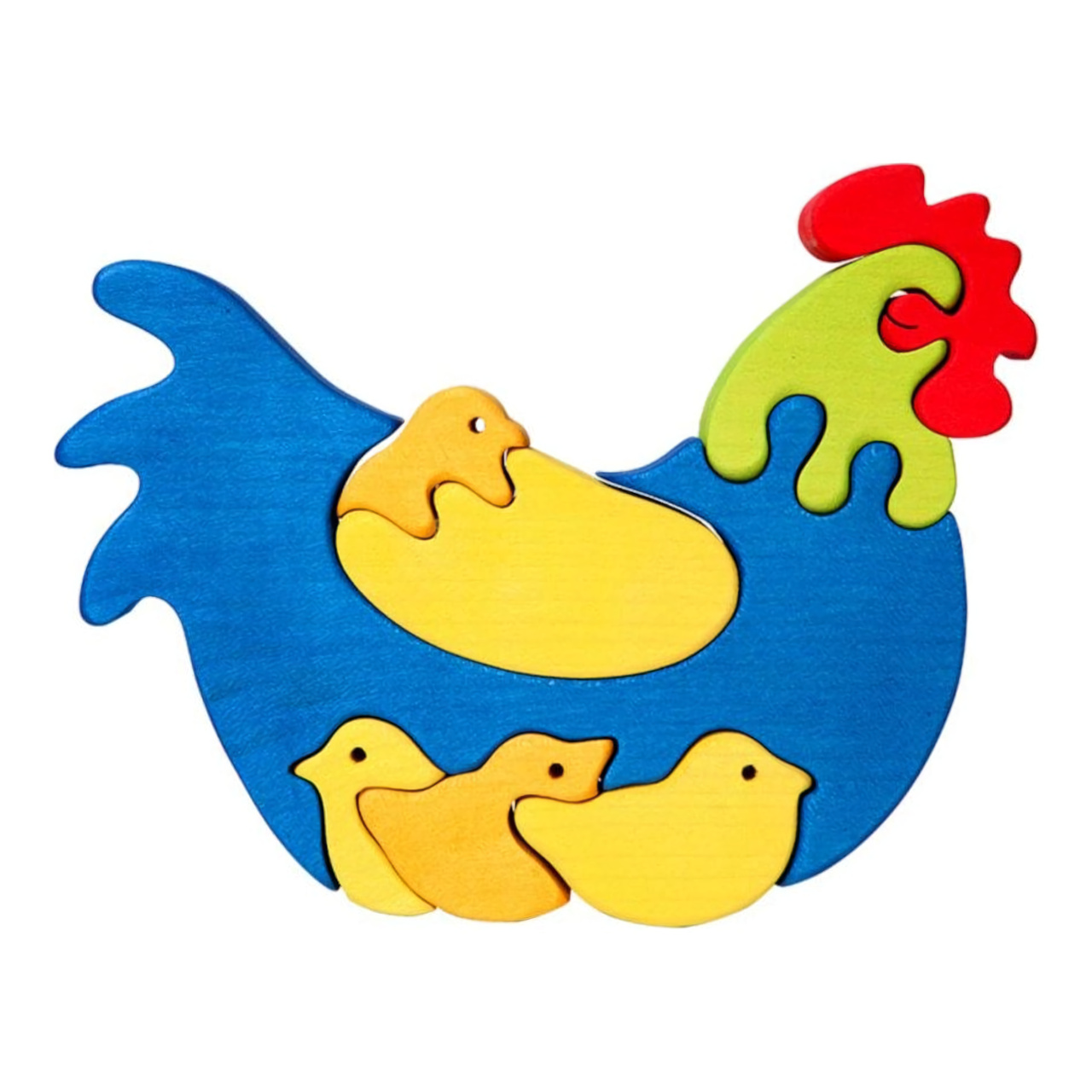 Fauna Dřevěné vkládací puzzle z masivu slepička s kuřátky