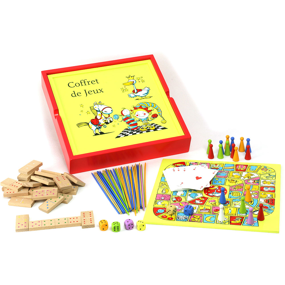 Soubor stolních, deskových her a karet v atraktivním a praktickém provedení. Obsahuje dámu, mlýn, husu, hady a žebříky i člověče nezlob se. Součástí je také mikádo, domino a balíček bridžových karet. Baleno v robustním boxu z masivního dřeva. Hlavní vlastnosti:stolní, deskové i karetní hryatraktivně ilustrovánopraktické balení