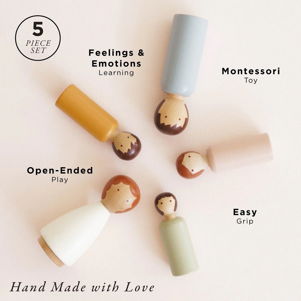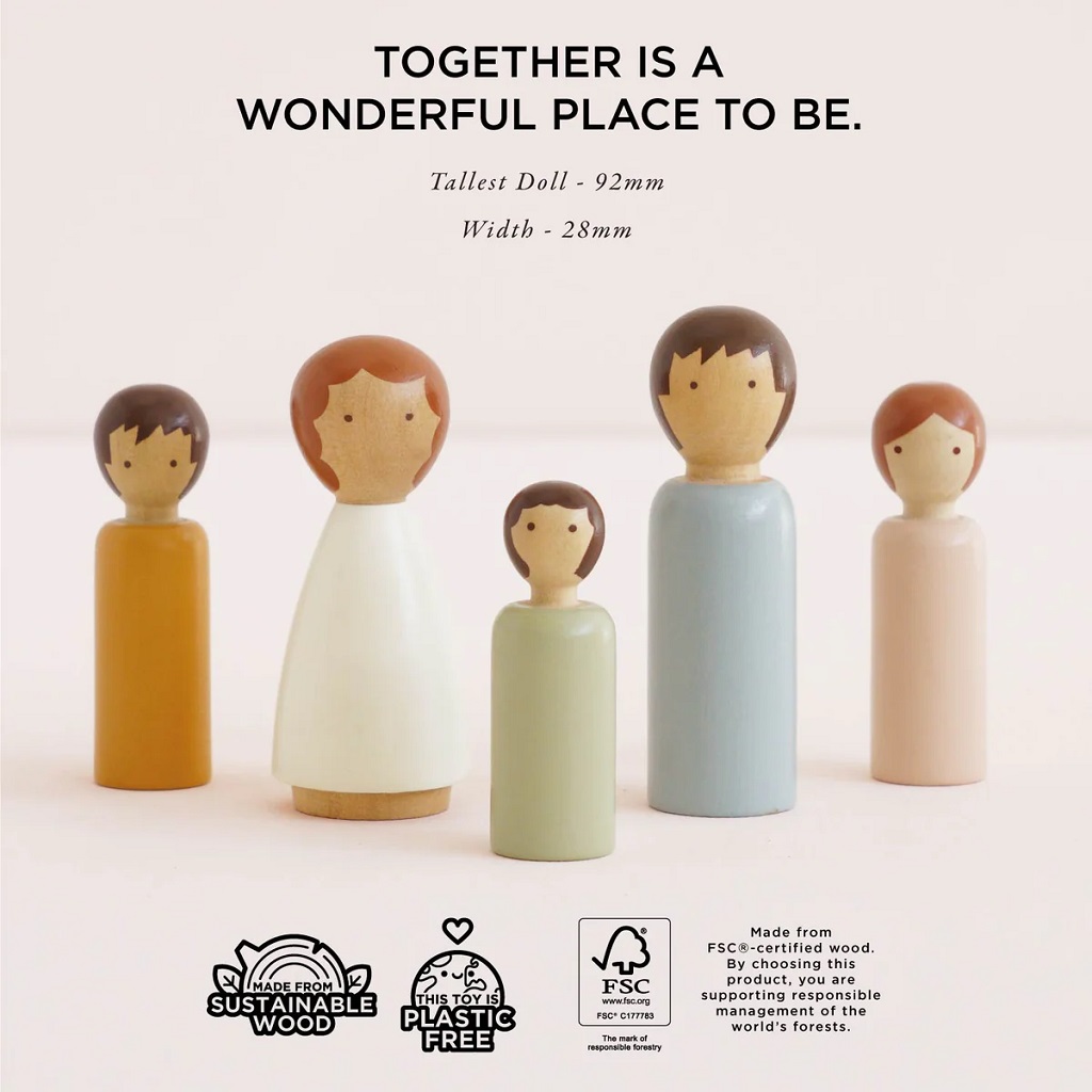 Dubois Wooden Family Dolls, to je malá dřevěná rodinka pro Vaše nekonečné hraní. Přineste dětským hrám kouzlo přirozenosti a jednoduché elegance s tímto ručně vyráběným setem. Sada pěti dřevěných panenek je vyrobena z jednoho kusu FSC® certifikovaného dřeva, každý kus je originální a má jemnou, přírodní strukturu a měkké, neutrální barevné ladění.Panenky jsou navrženy minimalisticky, bez plastů, s hladkým povrchem a netoxickým vodou ředitelným lakem, jsou tak ideální pro malé ruce a bezpečnou dětskou hru. Díky svému jednoduchému tvaru a přirozenému vzhledu podporují rozvoj fantazie a kreativního vyprávění.Tento set je perfektním doplňkem k domečkům pro panenky, mini-světům, hracím sadám nebo jako samostatná sada pro imaginární hry. Je to ekologická, stylová a trvanlivá hračka, která podporuje kreativní hru, jemnou motoriku a sociální interakci. Hlavní vlastnosti: 5 kusů dřevěných panenek skutečná rodinka, ideální pro domeček, malé světy nebo volnou hruFSC® dřevo a ekologické barvy minimalistický a neutrální design podpora kreativity a imaginace, děti mohou panenkám přiřazovat vlastní příběhy a rolepodpora jemné motoriky, kreativity a sociální hry ideální pro rozvoj představivosti a komunikacekompatibilní s domečky a dalšími doplňky snadné začlenění do většího herního světa Značka a certifikát FSC® (Forest Stewardship Council) zaručuje, že dřevo, ze kterého byl produkt vyroben, nebylo vytěženo nelegálně a pochází z lesů obhospodařovaných šetrným či přírodě blízkým způsobem, ve kterém jsou dodržovány přísné environmentální a sociální požadavky. Značka FSC® na výrobku znamená, že svým nákupem pomáháte chránit lesy a podporujete šetrné, odpovědné či přírodě blízké hospodaření, díky kterému jsou naše lesy stabilnější, zdravější, mají přirozenou druhovou skladbu a lépe odolávají negativním následkům klimatických změn.