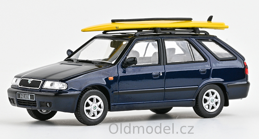 Model autíčka Škoda Felicia FL Combi (1998) 1:43 – Modrá Hlubinná Metalíza s Doplňkem