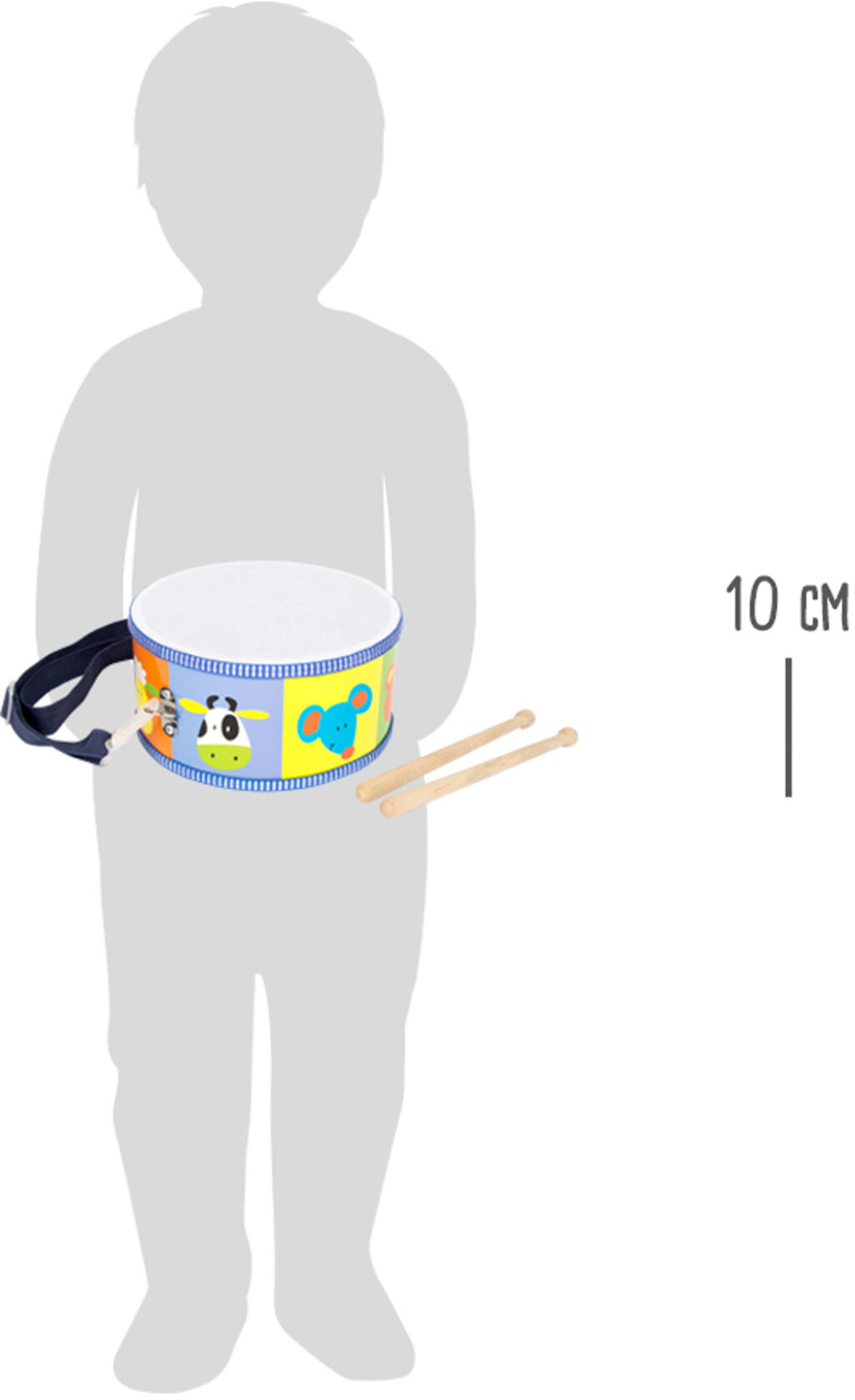 Poškozený obal. Nové zboží bez závad. Pohádkově barevný buben s roztomilými zvířecími hlavami zve k veselé vzpouře v dětském pokoji! To není hluk, to je hudba a radost z pohybu na celé čáře! Zde si mohou děti procvičit motoriku, vyřádit se a probudit zájem o hudbu! Včetně nastavitelného popruhu s 2 karabinkami a 2 bubínkovými paličkami (délka: cca 18 cm). Hlavní vlastnosti: trénuje motoriku dětínastavitelný popruh