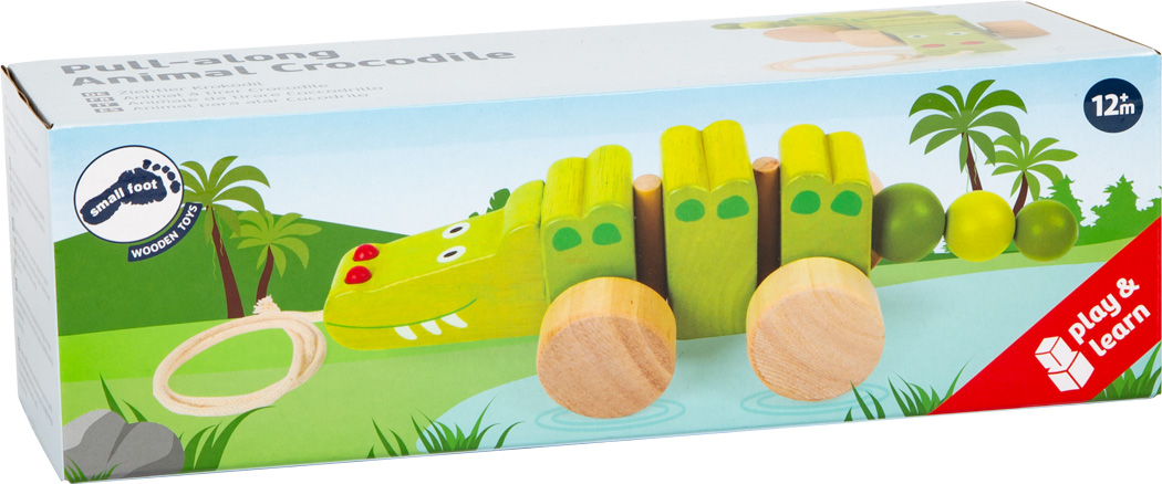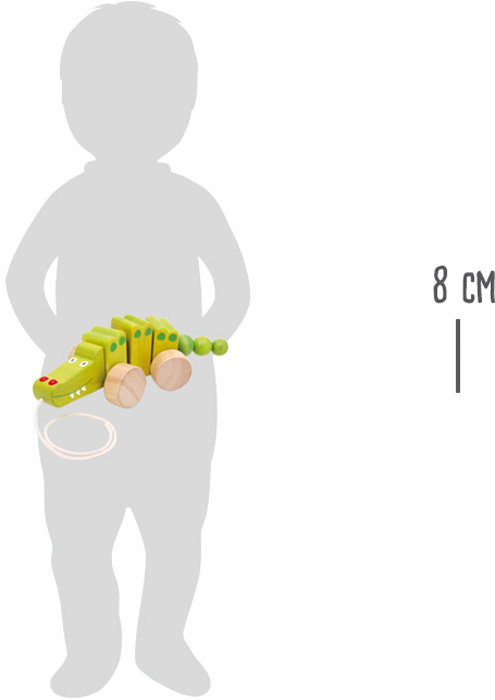 Tento legrační krokodýl, vyrobený z vysoce kvalitního zeleně glazovaného a neošetřovaného bukového dřeva, se za dětmi při zatažení za provázek vesele vrtí. Díky šňůře mohou nejmenší za sebou tohoto roztomilého tahacího krokodýla snadno tahat a chodit spolu na procházky.  Hlavní vlastnosti: podporuje rovnováhu a koordinaci pohybůveselé barevné provedení i design