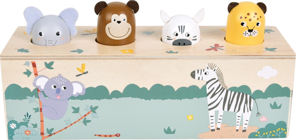 Tato interaktivní dřevěná hračka z FSC® 100% certifikovaného dřeva rozhýbe čtyři oblíbená zvířátka ze safari a navíc vydává reálné zvířecí zvuky! Stačí stisknout jedno zvířátko a ozve se jeho typický zvuk. Děti se tak hravou formou učí poznávat hlasy zvířat a zároveň objevují princip příčiny a následku. Čtyři detailně zpracované hlavičky – slon, opice, zebra a leopard překvapí děti veselým pohybem a autentickým zvukem při jemném stisku. Díky robustnímu dřevěnému zpracování, dětem přívětivým ilustracím a moderním safari designu je hračka nejen krásná, ale i odolná a trvanlivá. Hravý způsob, jak děti učit novým dovednostem, podporovat jejich zvídavost a přitom se skvěle bavit! Hlavní vlastnosti: z FSC® certifikovaného dřevanapájení na bateriezvuková hračkarozvíjí jemnou motoriku, sluchové vnímání, pozornost a logické myšlenípomáhá k porozumění souvislostem mezi akcí a reakcíbaterie 2xAAA 1,5 V – nejsou součástí balení  Značka a certifikát FSC® (Forest Stewardship Council) zaručuje, že dřevo, ze kterého byl produkt vyroben, nebylo vytěženo nelegálně a pochází z lesů obhospodařovaných šetrným či přírodě blízkým způsobem, ve kterém jsou dodržovány přísné environmentální a sociální požadavky. Značka FSC® na výrobku znamená, že svým nákupem pomáháte chránit lesy a podporujete šetrné, odpovědné či přírodě blízké hospodaření, díky kterému jsou naše lesy stabilnější, zdravější, mají přirozenou druhovou skladbu a lépe odolávají negativním následkům klimatických změn.