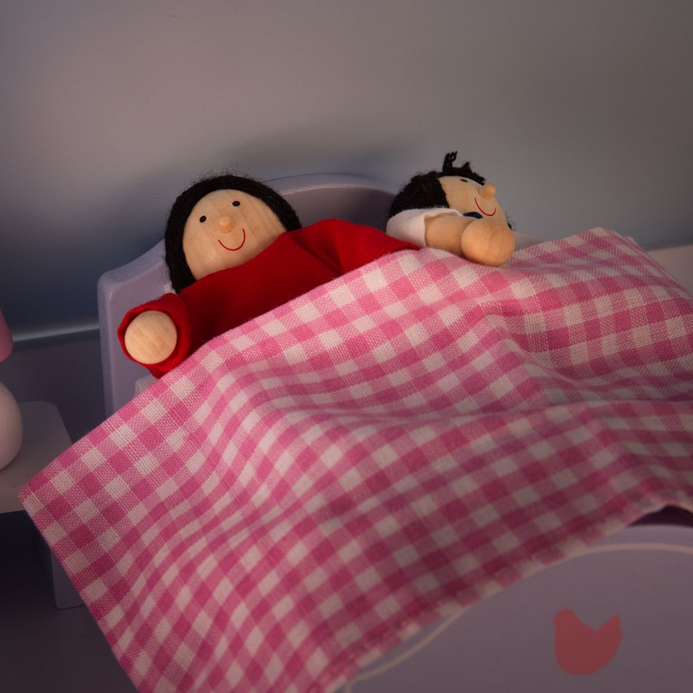 Krásný nábytek z bukového dřeva se bude hodit do každého domečku pro panenky, má prostě vše, co budou děti potřebovat k vytvoření ložnice pro panenky unavené po celém dni plném her. Set o devíti kusech zahrnuje dvojlůžko, skříň, židli, 2 noční stolky, 2 lampičky a 2 kusy „oblečení“, které se vejdou do škříně. Postel má také své lůžkoviny, které panenku udrží přes noc v teple! Krásně detailní set se bude hodit do domečku pro panenky Tidlington (T0220) a jiné domečky standardní velikosti. Podporuje kreativní a představivou hru. Vyrobeno z kvalitních materiálů z odpovědných zdrojů. Odpovídá evropské bezpečnostní normě. Skládá se z 9 dílů. Hlavní vlastnosti: set o devíti kusechdvojlůžko, skříň, židle, 2 noční stolky, 2 lampičky a 2 kusy „oblečení“podporuje kreativní a představivou hru