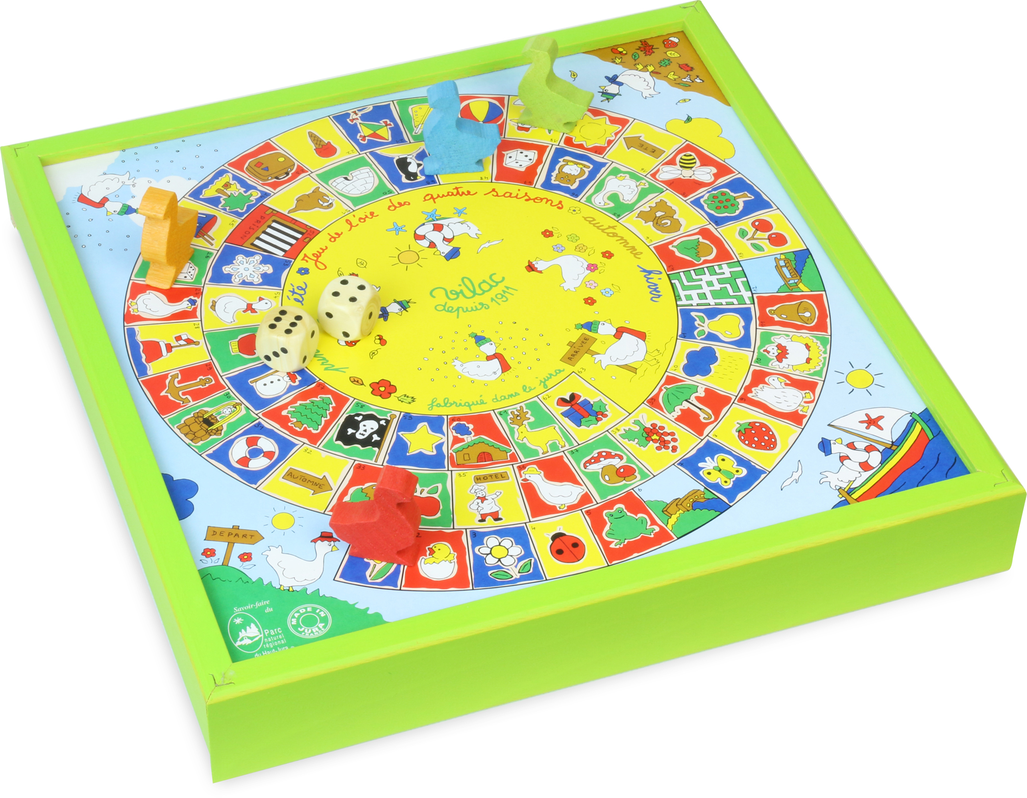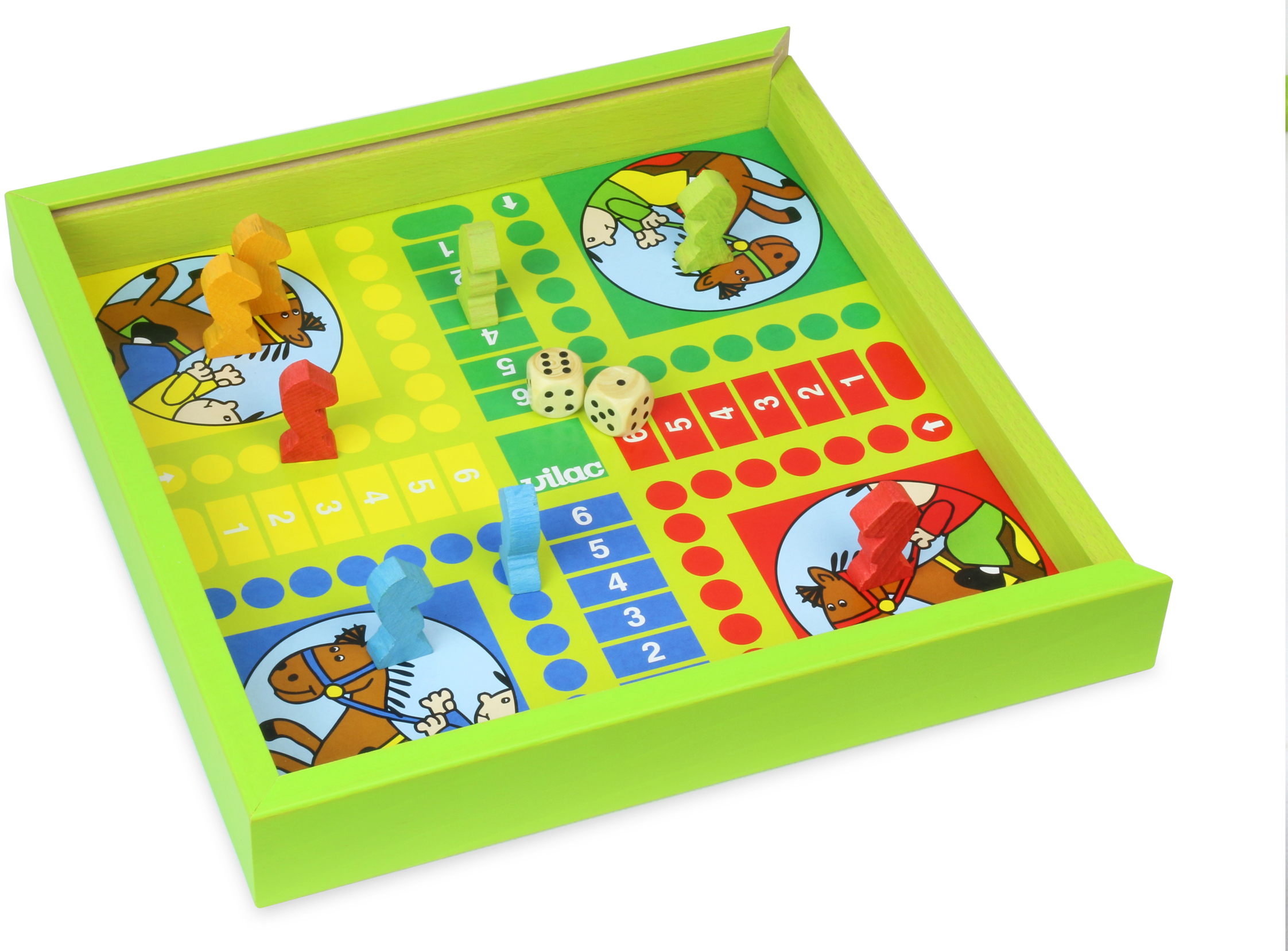 Klasický dřevěný soubor her. Na jedné straně najdete Člověče nezlob s figurkami koní, na druhé Husí hru. Husí hra spočívá v tom, že se dva nebo tři hráči pohybují po spirálovitém hracím poli a snaží se vyhnout políčkům s nástrahami jako například „most“ nebo „hotel“. Zábavné hry pro malé i velké. Vyrobeno ve Francii. Hlavní vlastnosti: soubor klasických hervyrobeno ve Francii Dokumentace: Návod ke hře Dřevěný soubor her (CZ)Návod ke hře Dřevěný soubor her (SK)