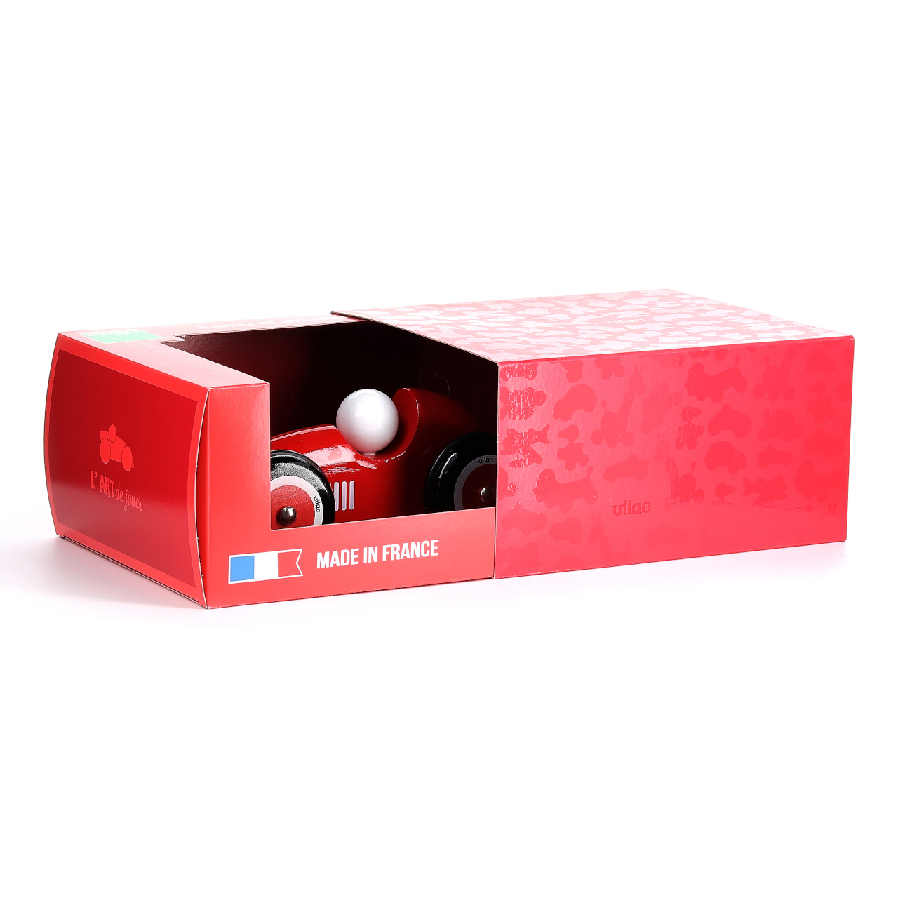 Velké dřevěné autíčko jedinečných tvarů a barev, které v každém, malém i velkém, řidiči vzbudí nadšení a chuť závodit. Svým provedením snadno osloví dospělé sběratele a i díky rozměrům se hravě stane nepřehlédnutelným doplňkem interiéru. Součásti autíčka jsou z masivního dřeva lakovaného tradičním procesem ponořování do lázní s barvou. Robustní kola se vyznačují hladkým chodem a jsou opatřena gumovými kroužky, díky kterým hračka při pohybu nepůsobí zbytečný hluk. Vyrobeno ve Francii, dodáváno v prémiové krabičce. Hlavní vlastnosti: jedinečný design a zpracovánítichý a kultivovaný chodvyrobeno ve Francii