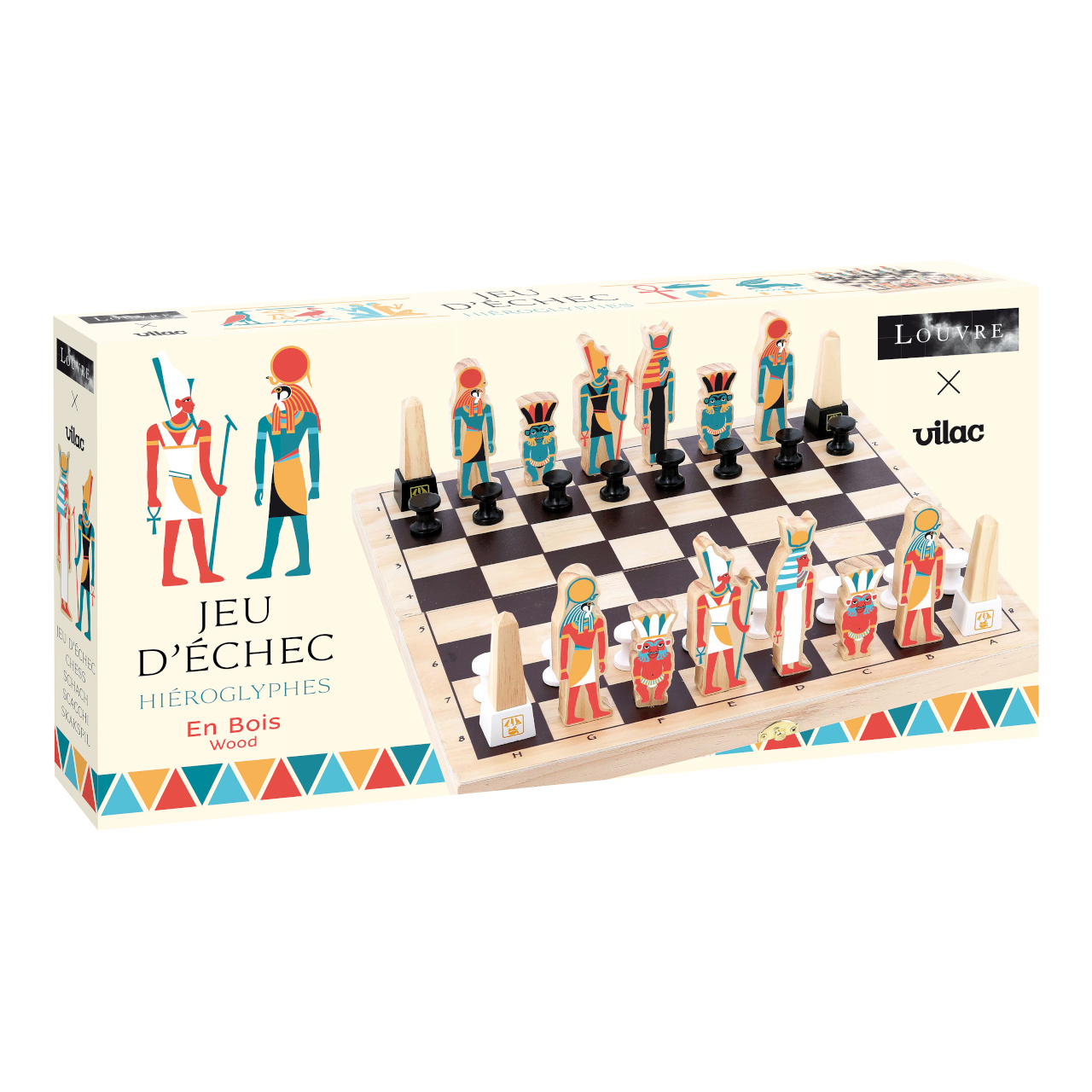 Máte zálibu ve starověkém Egyptě? Vyzkoušejte šachy s figurkami v podobě starověkých artefaktů a ikon inspirovaných expozicí egyptských památek muzea Louvre. Atraktivní zpracování zaujme a upoutá pozornost, kterou můžete zábavně zúročit, rozvíjet soustředění a strategické myšlení. Souprava se stane nepřehlédnutelnou ozdobou poliček a stolků v dětských pokojích, klubovnách a hernách. Hrací plocha je skládací, hru proto lze prakticky uklidit a může Vás provázet na cestách. Hlavní vlastnosti: hrací deska a 32 figurekpraktické a skladné baleníjedinečný design a zpracování  Umění hry, to je kolekce Vilac x Louvre. Klasická i méně známá díla, stálé i dočasné expozice Egypta nebo Řecka, řada Louvre bude každý rok doplněna o novou tvorbu, ve spolupráci s muzejními specialisty. Děti se mohou o obrazovém umění a velkolepých sochách z nejnavštěvovanějšího muzea na světe naučit nové poznatky hravým způsobem!