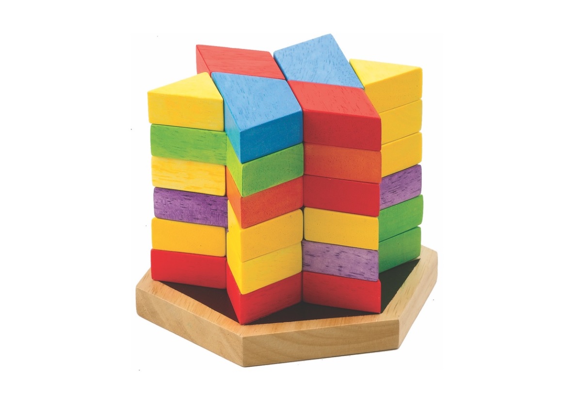 Základním prvkem těchto dřevěných kostek je dřevěný šestihran. Kostky v různých variacích tvarů a barev vytváří společně se šestihranem sadu nevyčerpatelných možností fascinujících staveb. Jak budou při hře vznikat různé hvězdy, trojúhelníky, šestihrany či jiné tvary dle vaší fantazie, mohou děti získávat zkušenosti v koordinaci, tvořivosti a současně si rozvíjet svou představivost a logiku. Děti mohou být pomocí této hry zasvěceny i do tajů zlomků. Samostatně mohou kostky sloužit jako stavební prvky pro tvorbu i jiných různobarevných tvarů, které můžete stavět i mimo předpřipravený šestihran. Pro inspiraci jsou přiloženy vzory. Na začátku tedy můžete načerpat zkušenosti, a pak dát prostor své fantazii. Hlavní vlastnosti:28 kostek a základna